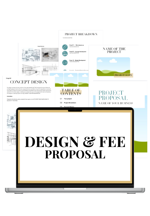 “Katie’s Design & Fee Proposal Template is a game-changer. It’s expertly crafted, saves significant time, and presents your fees with confidence and clarity. Since using it, my clients take my proposals more seriously, and I’ve closed more projects.” — Alison”